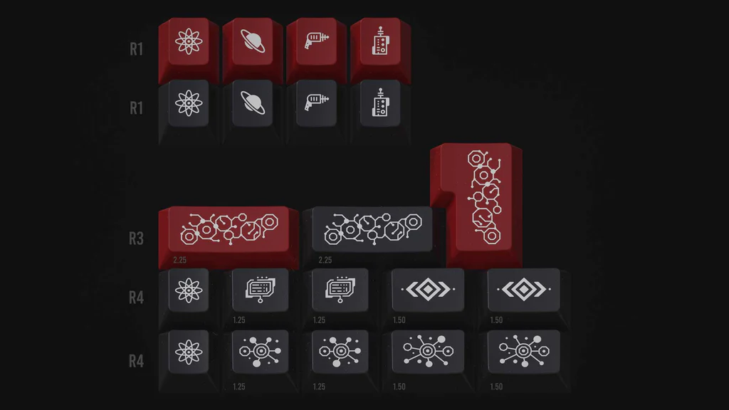 GMK DEEPWELL lấy cảm hứng từ Honeywell nhưng với màu sắc phong phú hơn và thêm một chút yếu tố về khoa học viễn tưởng. Với tông màu chủ đạo là Trắng-Đen-Đỏ, là sự kết hợp cực kì hài hòa, dễ dàng phối với bất cứ màu case nào.