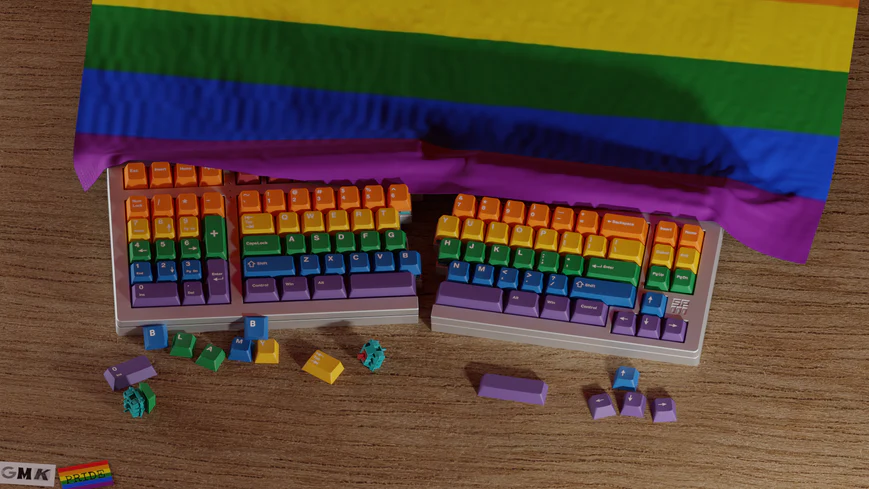 Blamby đã thiết kế bộ keycap này để thể hiện sự ủng hộ đối với cộng đồng LGBTQ+. GMK Pride là sự tôn vinh lòng dũng cảm, sự tự tin và tính tích cực của họ. Với thiết kế gồm nhiều dải màu như cầu vồng, GMK Pride sẽ khiến chiếc bàn phím của bạn trở nên vô cùng nổi bật