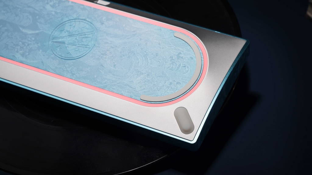 Tạ lưng dạng “racetrack” bo cong với họa tiết sóng, không chỉ tạo điểm nhấn thẩm mỹ mà còn giúp cầm nắm chắc tay khi di chuyển bàn phím. Cặp feet “tai thỏ” được tạo hình như đang “lắng nghe” từng cú gõ, hòa vào đường cong lớn của tạ lưng, mang lại tổng thể liền mạch và rất có hồn.