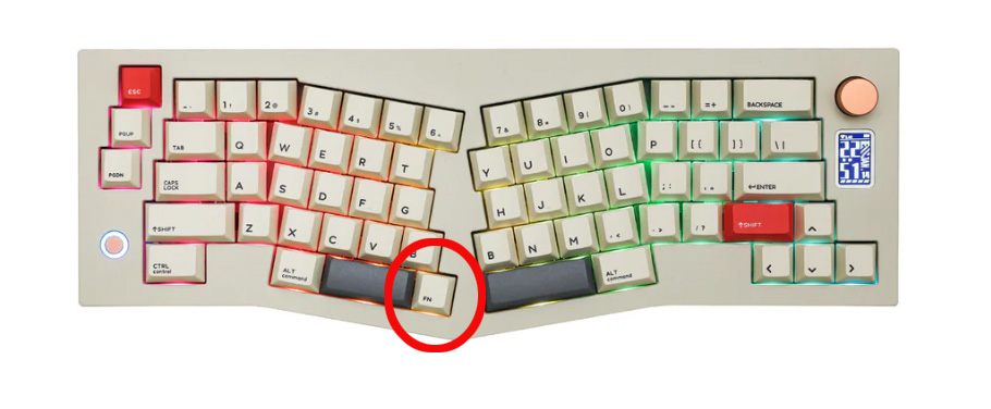 Nút FN mặc định của phím nằm tại vị trí này. Nút FN sẽ không có chức năng riêng lẻ mà sẽ phải kết hợp với một nút khác. Nút này bấm sẽ không thể hiện trên các trình test keyboard