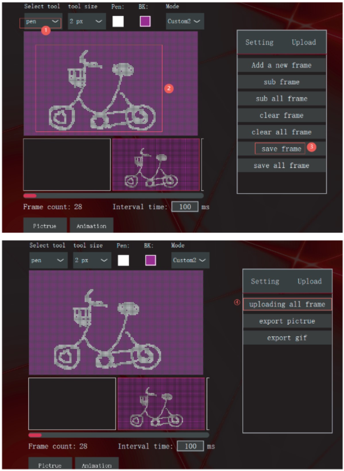 - Ngoài việc nhập các hình ảnh và hoạt ảnh hiện có, bạn cũng có thể sử dụng bút để vẽ bức tranh bạn muốn và tải chúng lên LCD. Xem các bước sau: