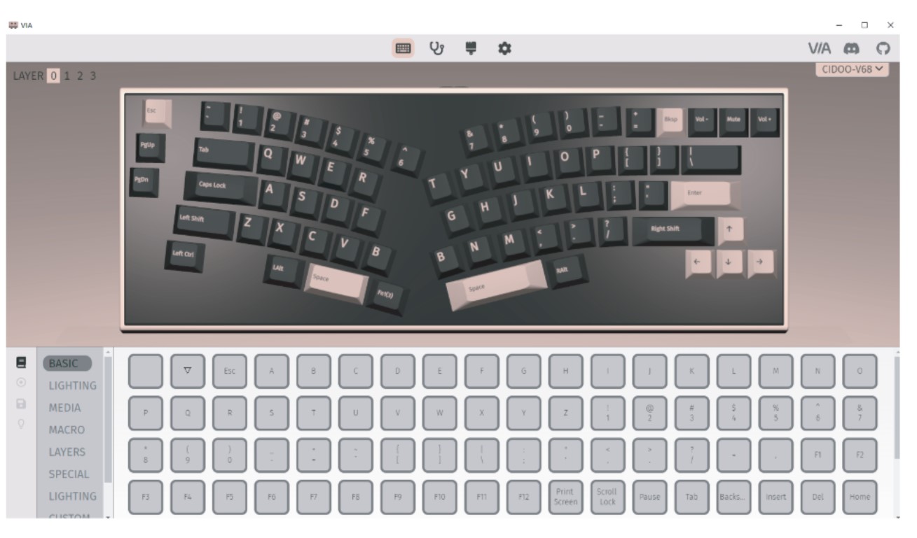- CIDOO V68 hỗ trợ sử dụng chương trình VIA để thay đổi bố cục phím