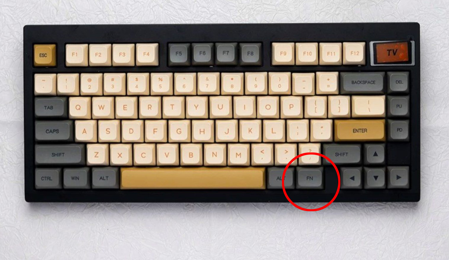 Nút FN mặc định của phím nằm tại vị trí này. Nút FN sẽ không có chức năng riêng lẻ mà sẽ phải kết hợp với một nút khác. Nút này bấm sẽ không thể hiện trên các trình test keyboard