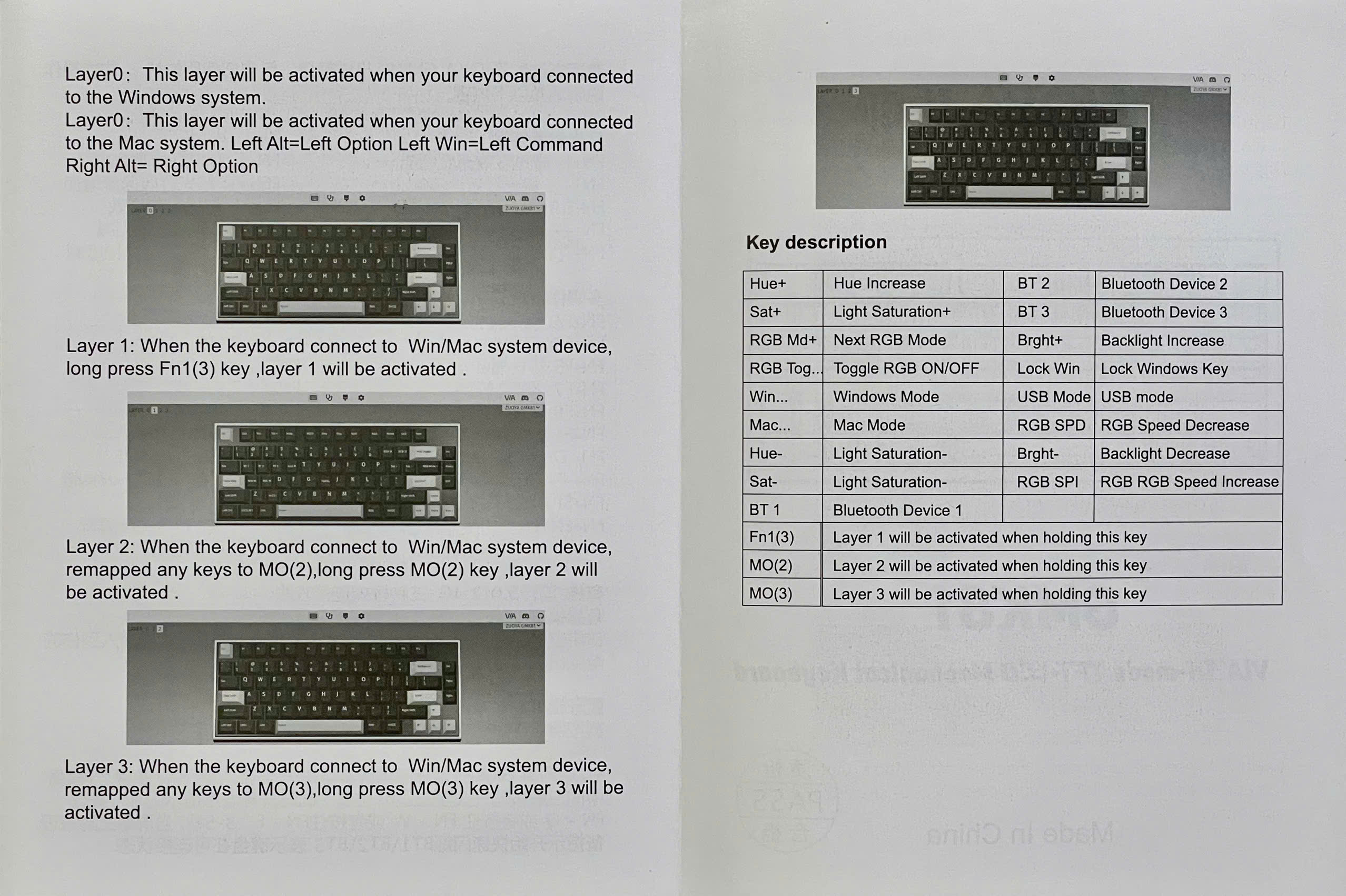 | Layer 2 | Khi kết nối Win/Mac | Giữ MO(2) | Kích hoạt Layer 2 (phím đã remap sang MO(2)) |