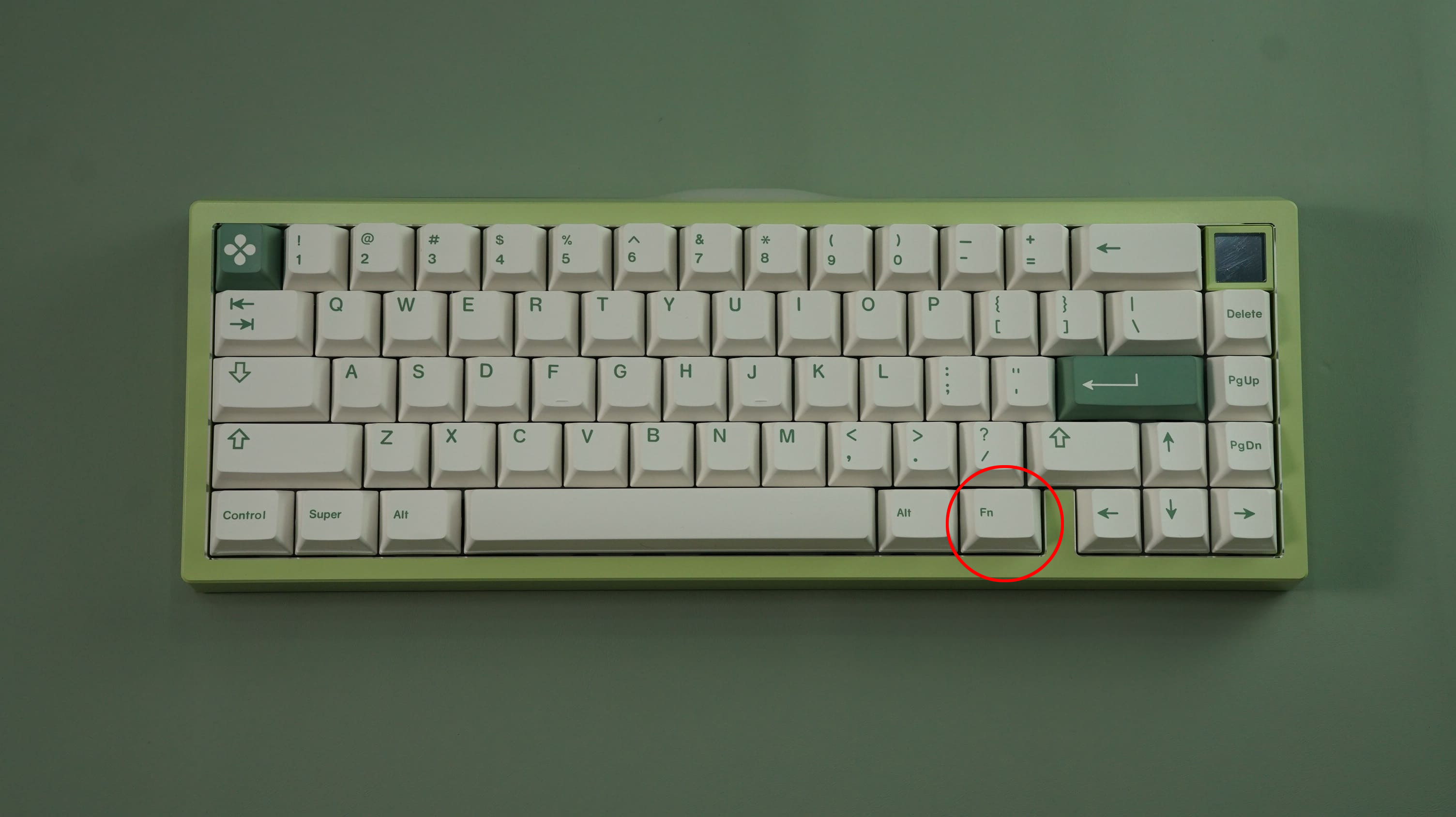 Nút FN mặc định của phím nằm tại vị trí này. Nút FN sẽ không có chức năng riêng lẻ mà sẽ phải kết hợp với một nút khác. Nút này bấm sẽ không thể hiện trên các trình test keyboard