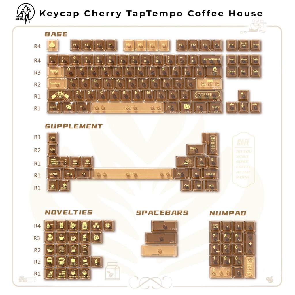 Đánh giá Keycap Cherry TapTempo Coffee House 1 PC Printing Full Set