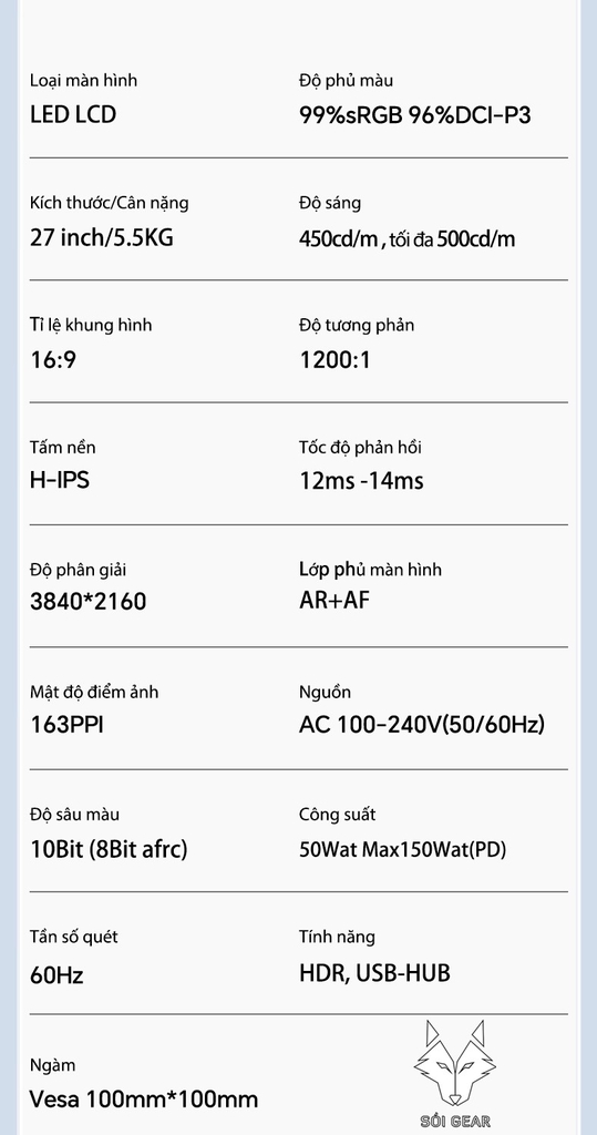 - Chính sách bảo hành các sản phẩm màn hình tại Sói Gear. Quý khách vui lòng tham khảo trước khi mua sản phẩm