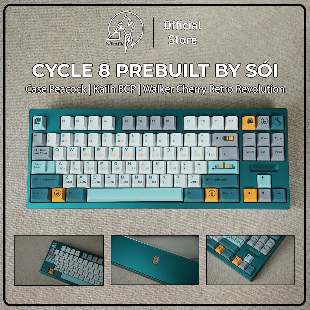 Đánh giá [Prebuilt by Sói] Cycle 8 Peacock - Switch Kailh BCP - Keycap Walker Cherry Retro Revolution
