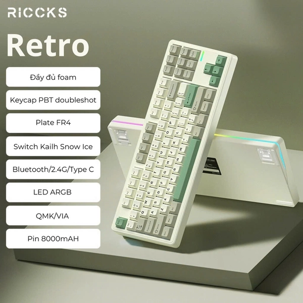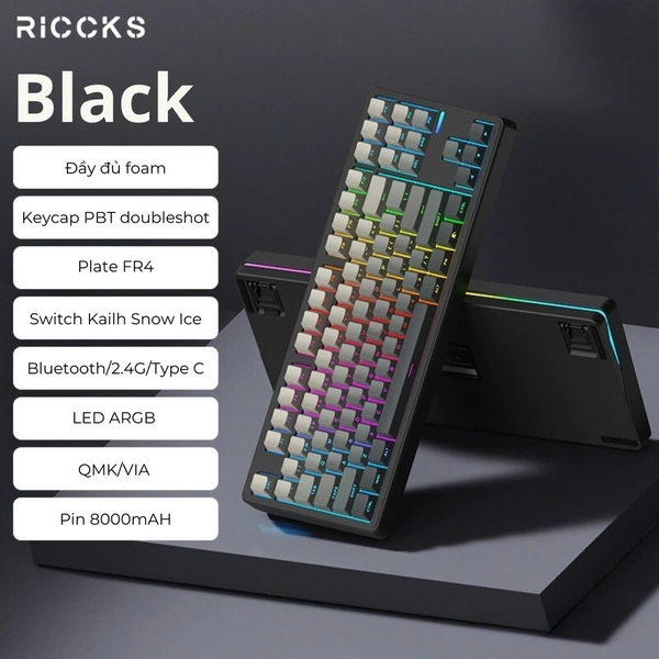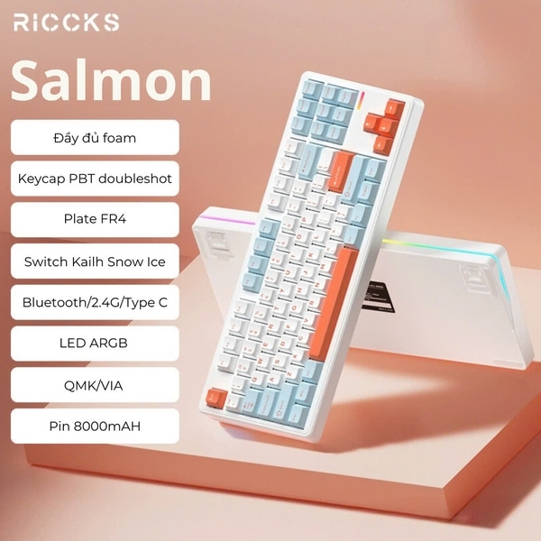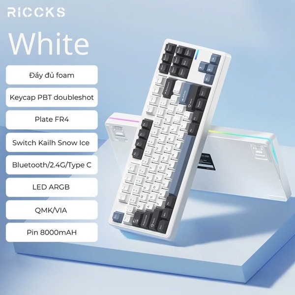 RICCKS RS8 - Bàn phím cơ Không dây 3 Mode | Mạch Xuôi HIFI | Led Viền | QMK/VIA
