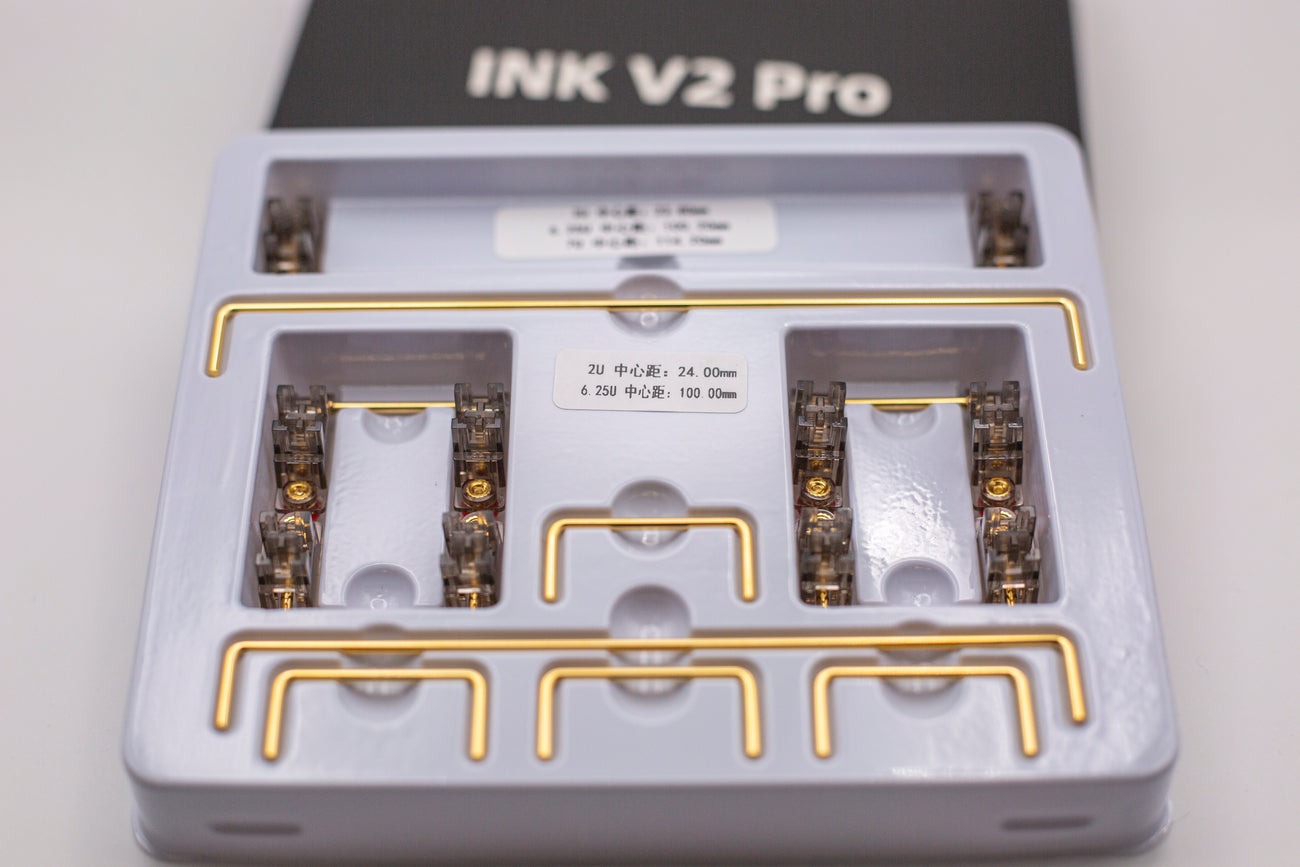 Gateron Ink V2 Pro là bản nâng cấp mới của phiên bản cũ với phần housing đã được ổn định hơn trong quá trình sử dụng phím. Bộ stabilizers này vẫn giữ được cảm giác và kết cấu cao cấp, phần kết cấu móc ngược đặc trưng móc ngược của mình. Phần ốc của bộ stab vẫn được mạ vàng chống oxi-hóa nâng tính thẩm mĩ cũng như gia tăng tuổi thọ cho chi tiết. Đây sẽ là 1 stab rất đang trải nghiệm cho anh em trong thời gian tới