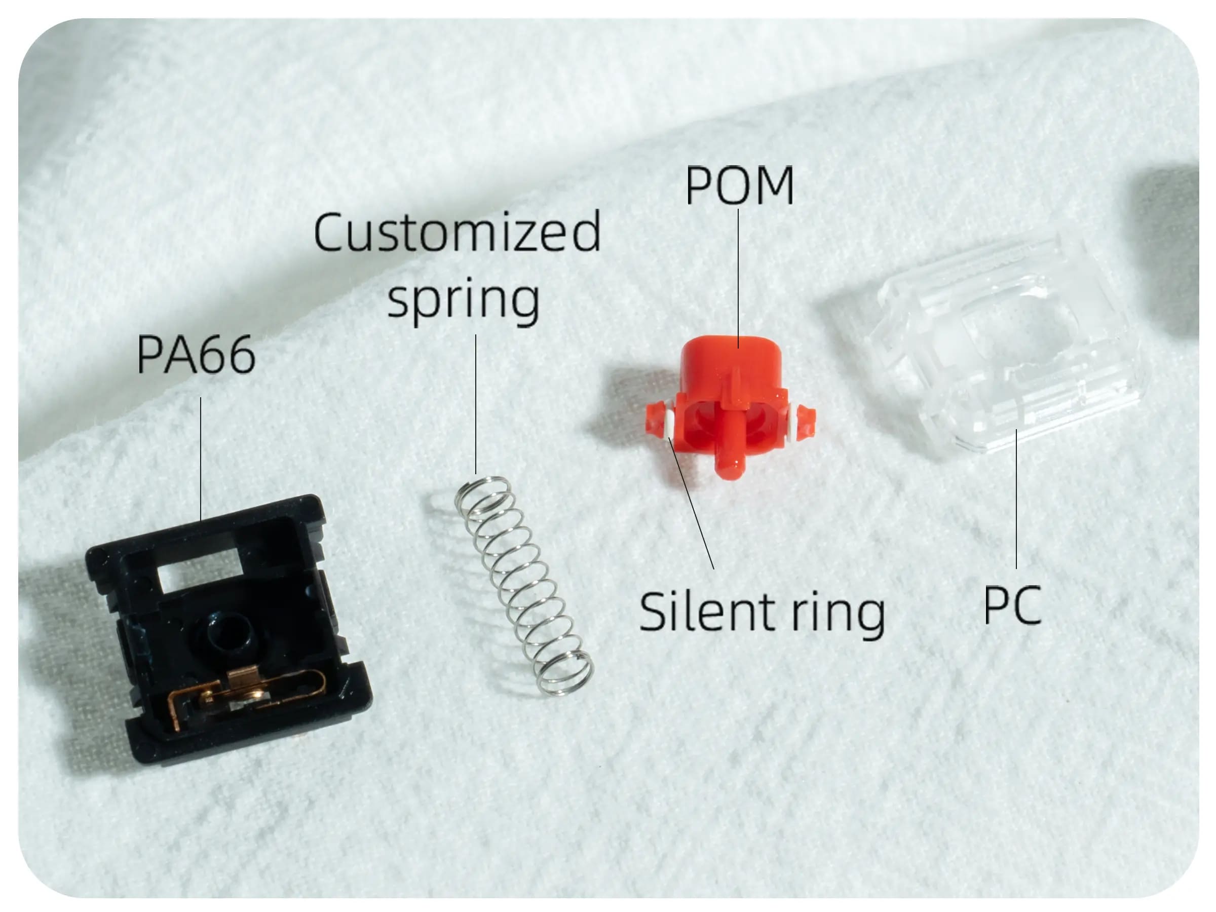 Switch low-profile silent, tối ưu giảm ồn và tăng tốc độ phản hồi cho bàn phím nhỏ gọn. Thiết kế lube sẵn, hành trình 3.0mm và pre-travel 1.7mm cho kích hoạt nhanh, chính xác.