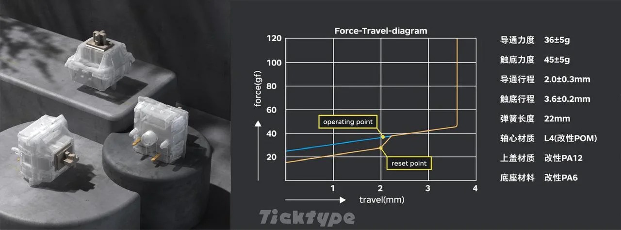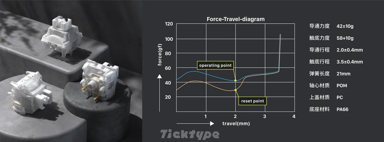 - Dựa trên di sản của các thương hiệu bàn phím tùy chỉnh cao cấp Owlab, Neo và Qwertykeys, mục tiêu của Ticktype là mang đến cho người tiêu dùng nhiều sản phẩm được thiết kế chính xác và lắp ráp sẵn, đồng thời tăng cường mức độ nhận diện và tác động của thương hiệu trên toàn thế giới.