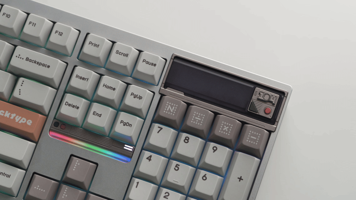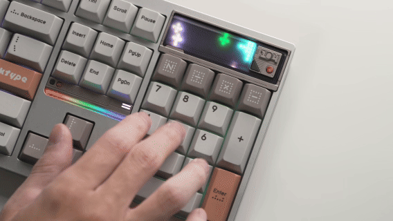 - Ở góc trên bên phải, DP104 được trang bị một màn hình pixel sống động — điểm nhấn nhỏ nhưng đầy cá tính, mang lại cảm giác thú vị mỗi khi bạn chạm tay vào bàn phím.